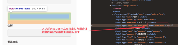 対象のページでブラウザの検証ツールを開いてく ださい。name属性を確認できます