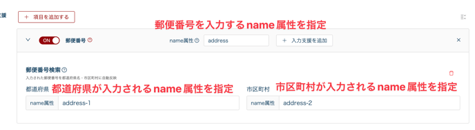 市区町村:入力された郵便番号に対応した市区町村を反映するフォームを指定します