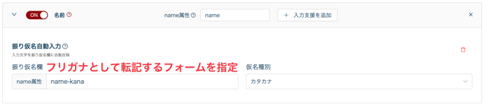 振り仮名欄:振り仮名として転記したいフォームを指定してください